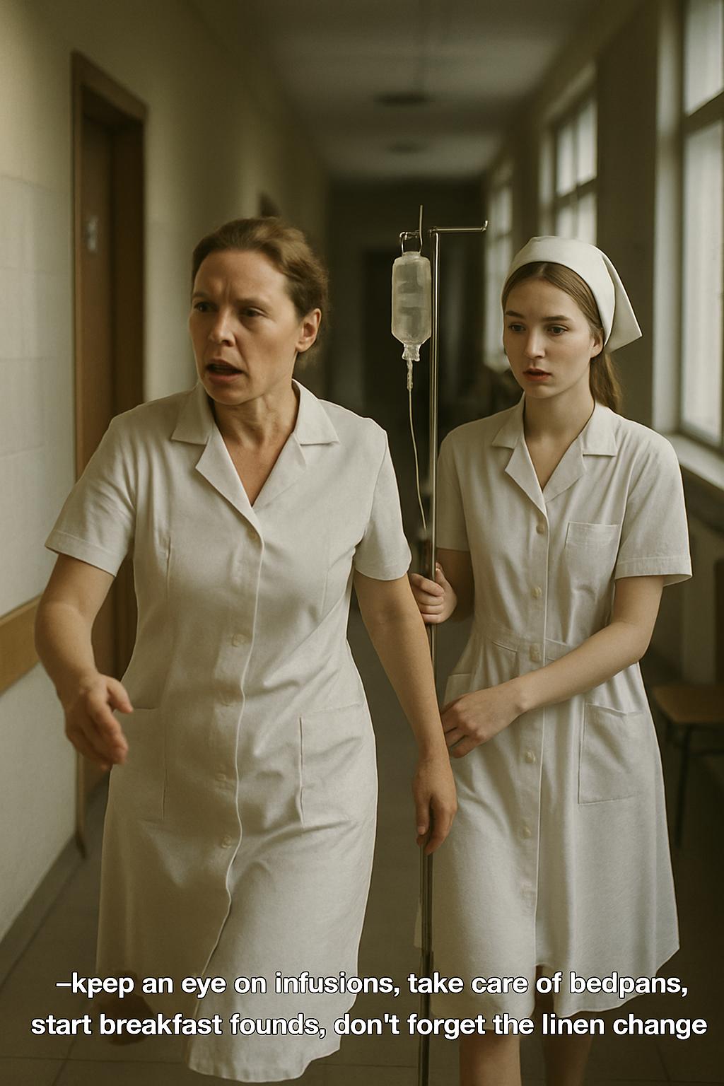 „Nikolo Míkaová! Do pátého pokoje připrav infuzi, z osmičky odnes nočníky. A hni sebou, je potřeba ještě rozvézt snídani a ve třetí ihned vyměnit prádlo!“ rozdávala pokyny vrchní sestra Ludmila Malířová, aniž by zpomalila krok. „Rychleji, Nikolo, vizita je za chvíli, nezdržuj se!“