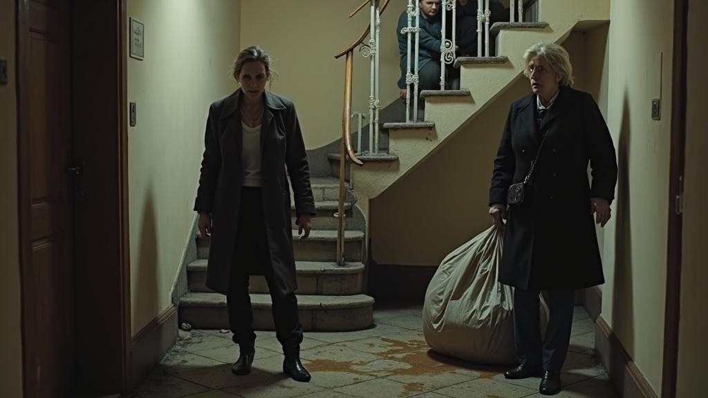 Dveře naproti se okamžitě pootevřely a objevila se v nich rozespalá sousedka s rozcuchanými vlasy.