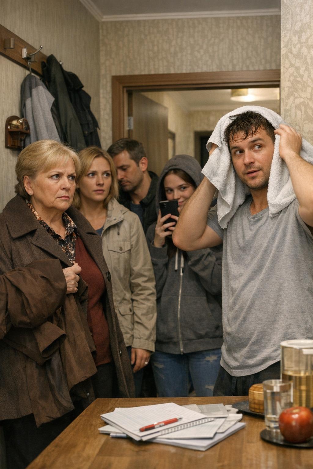 „Jindřich je ve sprše,“ oznámila klidně, když se všichni shromáždili v předsíni. „Posaďte se v obýváku, za chvíli přijde.“