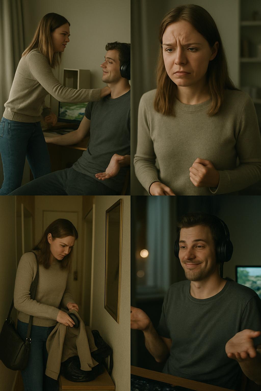Oči jí nebezpečně blýskaly, ruce sevřela v pěsti a zlostně s nimi zatřásla ve vzduchu. Beze slova se pak rozeběhla po bytě a začala chaoticky sbírat své věci. Radek si jí sotva všiml, znovu se ponořil do hry a nadšeně se bavil s ostatními hráči přes sluchátka.
