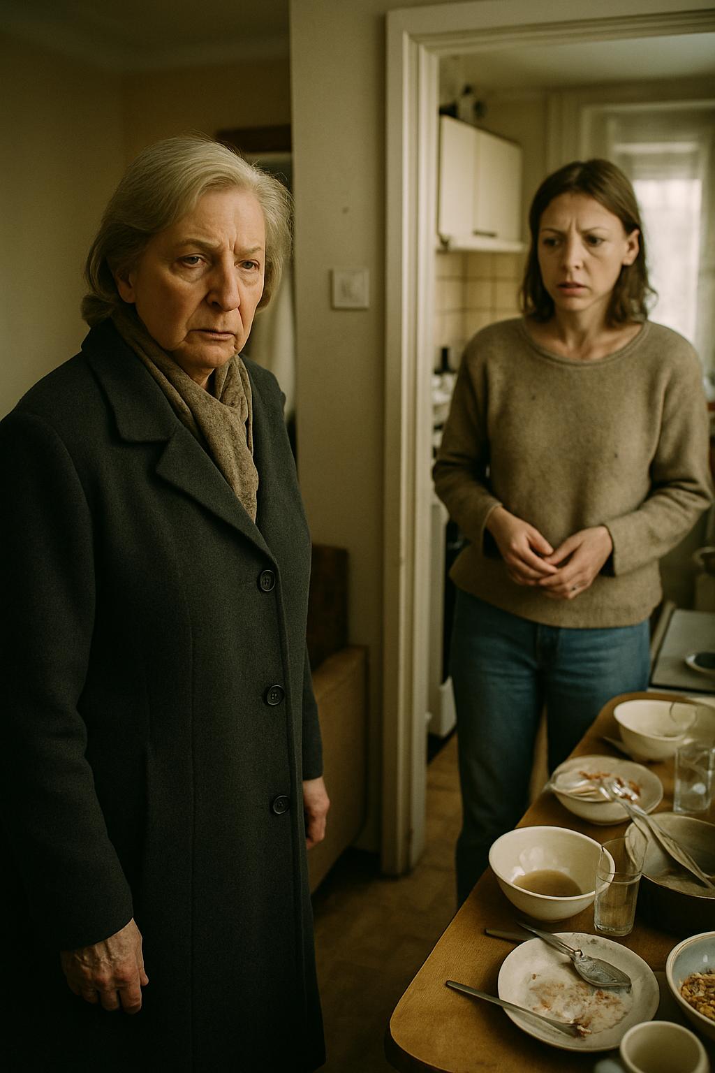 Tchyně, která rodinu svého syna navštěvovala jen výjimečně, tentokrát vstoupila do bytu a zůstala stát v němém úžasu. Všude vládl nepořádek, z kuchyně se nelinula žádná vůně oběda a její snacha působila zmateně a bezradně.