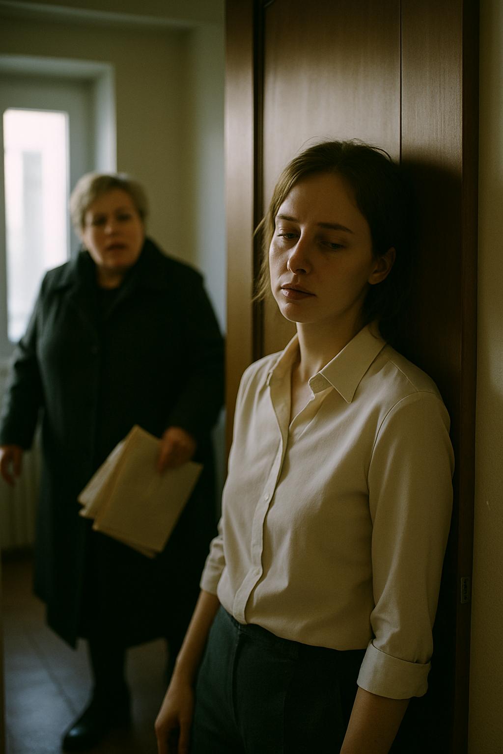 Tchyně vpadla dovnitř bez pozvání, rázná jako poryv větru. Její robustní postava zahalená do tmavého kabátu zaplnila předsíň. V ruce svírala objemné desky přecpané dokumenty.