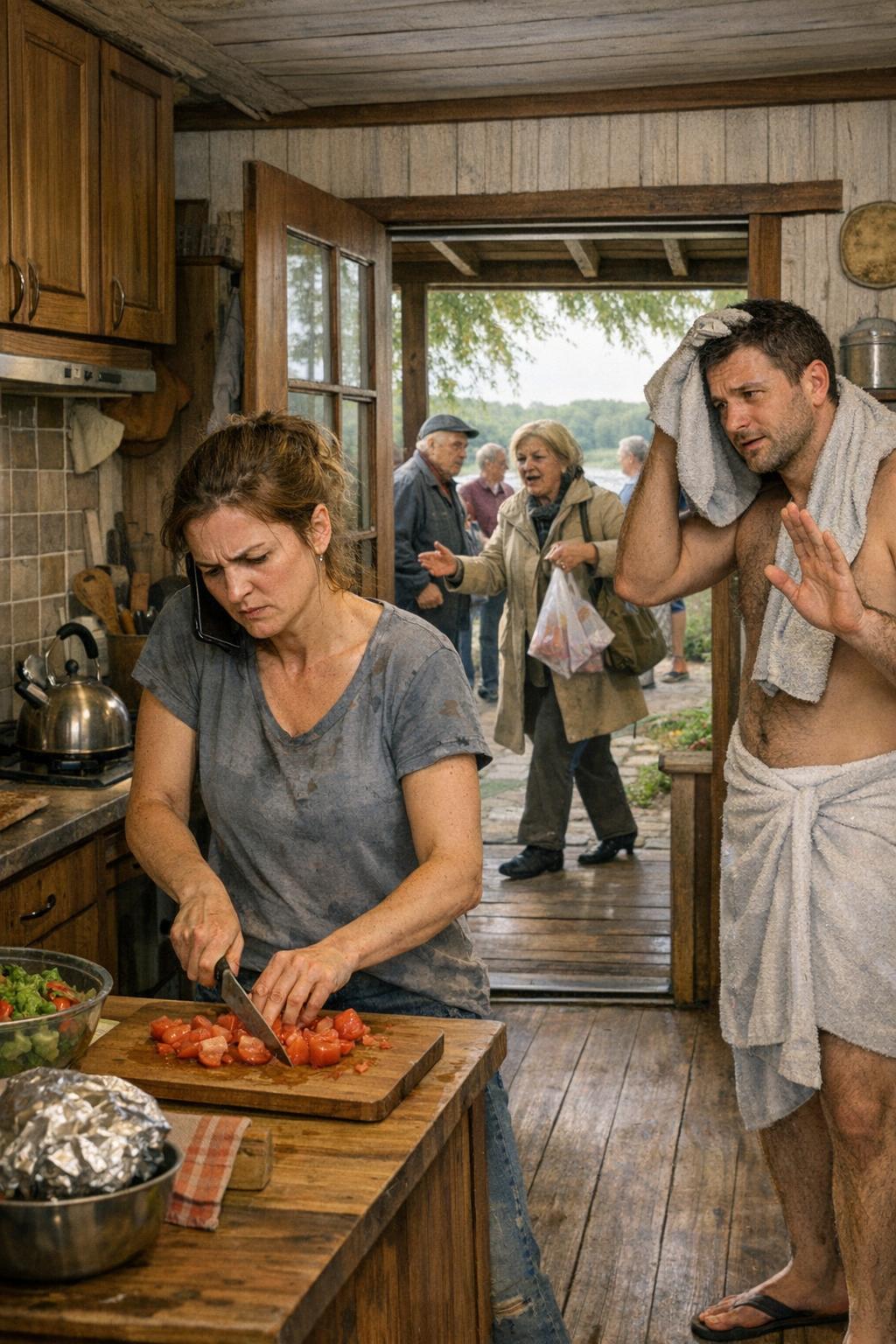 — V klidu? — otočila se k němu s nožem v ruce. — Přivezla sem cizí lidi bez jediného slova! Do našeho domu! A já mám kolem nich běhat?