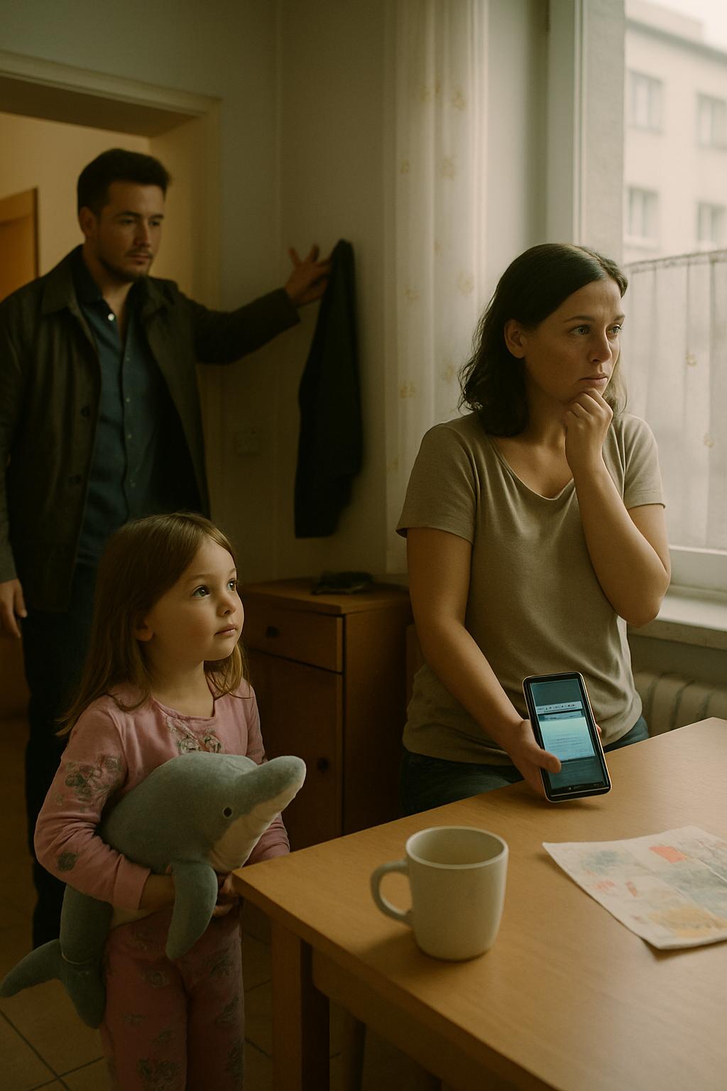Jejich malá útulná kuchyň jí najednou připadala cizí. Bílé závěsy s kopretinami, které loni tak nadšeně vybírala, se lehce pohupovaly v průvanu. Na stole stál nedopitý čaj a vedle něj ležel obrázek od Elišky – tři postavy držící se za ruce před modrým mořem. Při pohledu na dětskou kresbu ji píchlo u srdce.