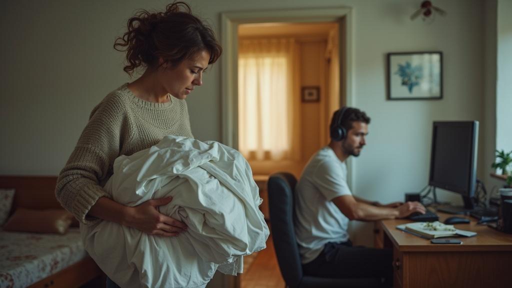 „Toho věčného zvaní kdekoho k nám domů! Už mě nebaví dělat pradlenu, uklízečku i služku zároveň!“ vybuchla a shodila mu pod nohy hromadu kdysi sněhobílých prostěradel. Teď je hyzdily šedé mapy a podezřelé skvrny. Zdálo se, že jejich „dočasní hosté“ si s hygienou hlavu nelámali. Anebo látka prostě nevydržela ten nekonečný provoz. Stejně jako ona. I její trpělivost měla své hranice.