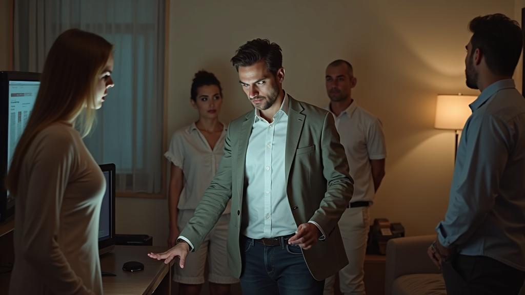 Kolegové, kteří se sešli oslavit pracovní povýšení, spolu s několika přáteli nechápavě zírali na Terezu. Místností se rozlil šepot, někdo odvrátil oči, jiný se snažil tvářit neutrálně.