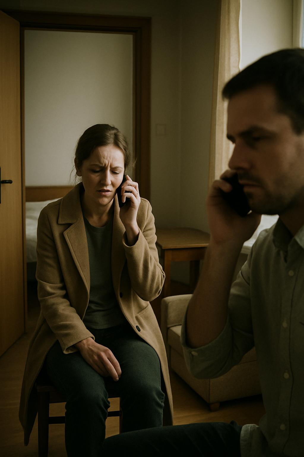 Pohledem přelétla to málo, co tu zůstalo: odřený stůl, manželskou postel a malou dětskou pohovku. Roztřeseně vydechla a sáhla po mobilu. Chtěla zavolat policii a nahlásit krádež, ale vzápětí ji napadlo, že by nejdřív měla mluvit s manželem a poradit se, jak postupovat.