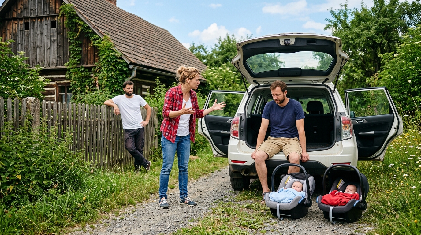„Ty ses zbláznil?“ vystoupila Tereza z auta, aniž by si vzala mikinu. Chladný vítr jí okamžitě pronikl pod tenké tričko. „Sotva stojím po porodu na nohou! V tom domě nejsou ani pořádné dveře! Kde budu koupat děti? Na čem ohřeju vodu?“