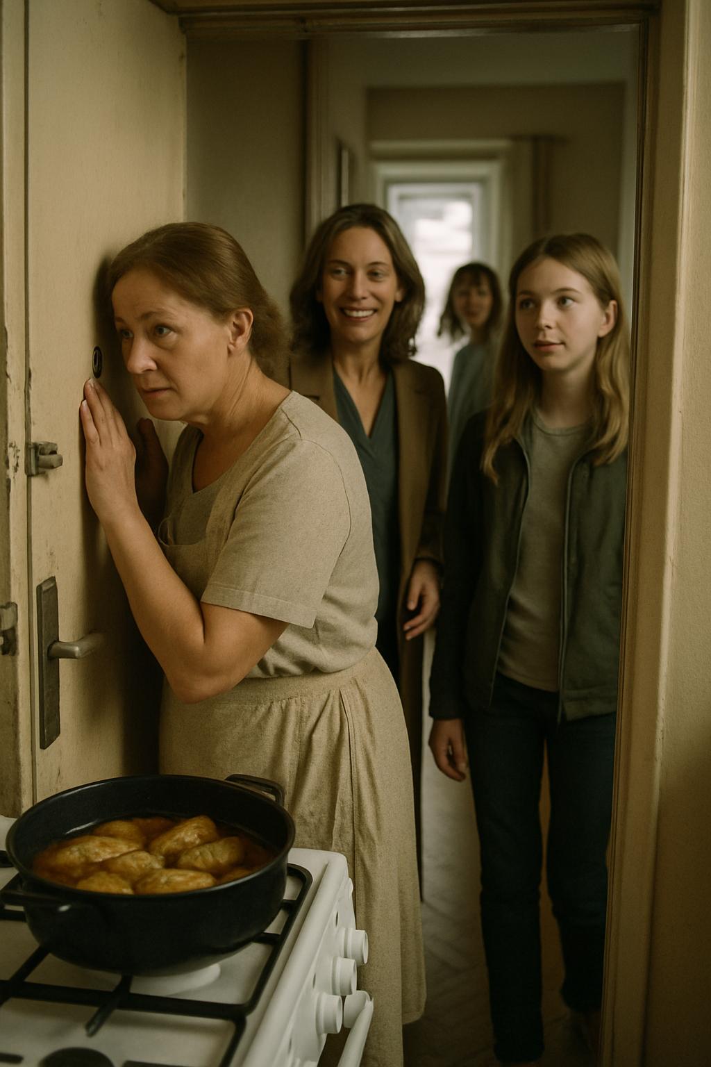 Podívala se kukátkem ven, ale tvář za dveřmi jí nic neříkala. Na chodbě stála neznámá žena a vedle ní dospívající dívka, mohlo jí být tak patnáct.