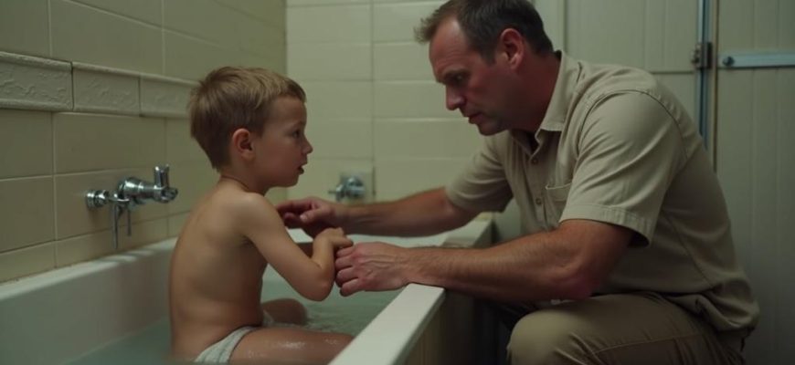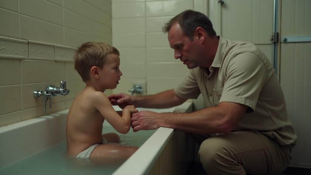 Chlapeček se vzpíral a odmítal vlézt do vany, oči měl plné slz.