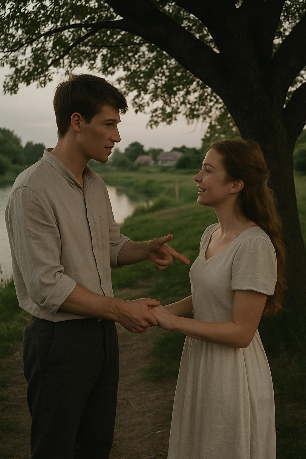 Tehdy se procházeli letním podvečerem za vsí, podél řeky. Vzduch voněl trávou a voda líně šuměla mezi břehy. Radim se náhle zastavil, jemně ji uchopil za obě ruce a podíval se jí do očí.