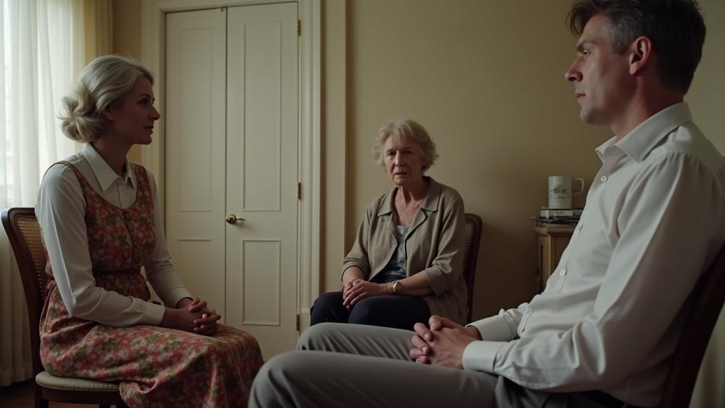 Aby změnila téma, Kateřina odešla do kuchyně ohřát konvici. V obýváku zůstal její manžel Jan. Jakmile paní domu odešla, obrátila se na něj jeho matka: