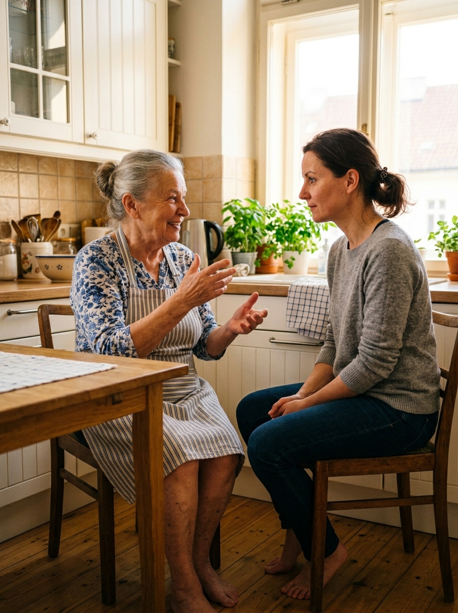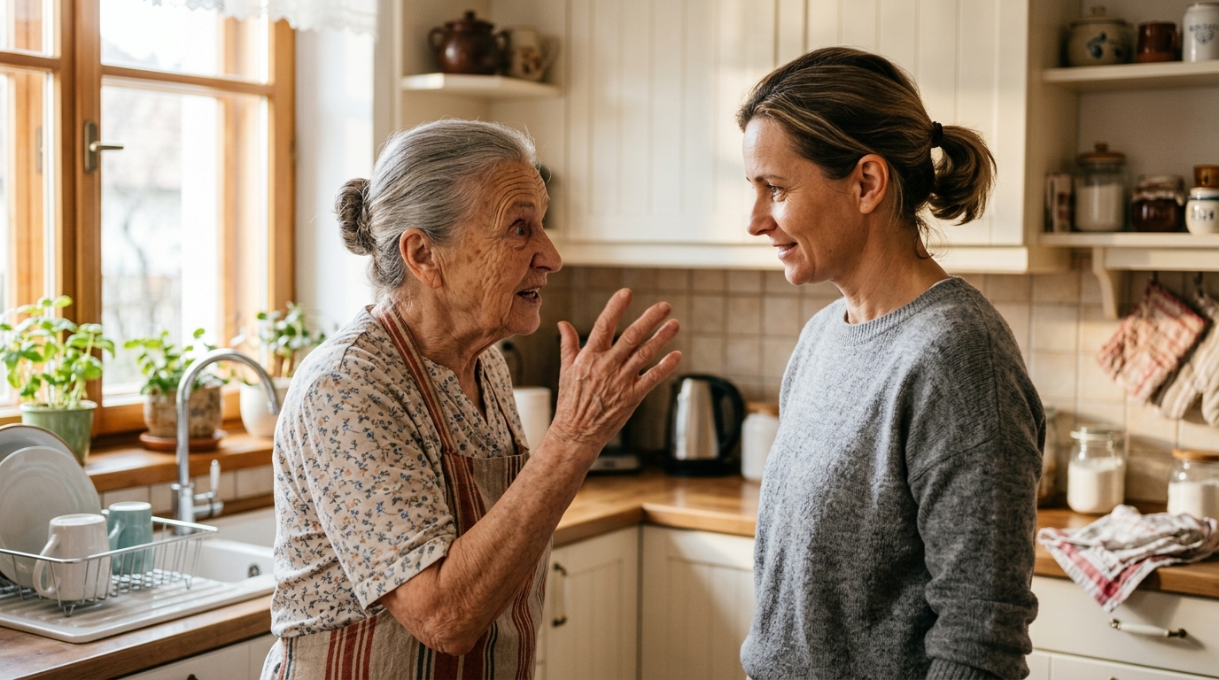 Těch pár minut u dřezu pro ni už dávno představovalo malý rituál klidu. Byla to krátká pauza po práci, kdy si mohla v hlavě všechno srovnat. Šplouchání vody přehlušovalo dotěrné myšlenky, odplavovalo únavu a vytvářelo alespoň zdání soukromí. V kuchyni se mísila vůně pečeného kuřete s ostrou svěžestí saponátu. U stolu seděla tchyně, Hana Řezníková, a pomalu míchala cukr v šálku. Lžička cinkala o tenký porcelán v pravidelném, nepříjemně přesném rytmu, jako by odměřovala čas.
