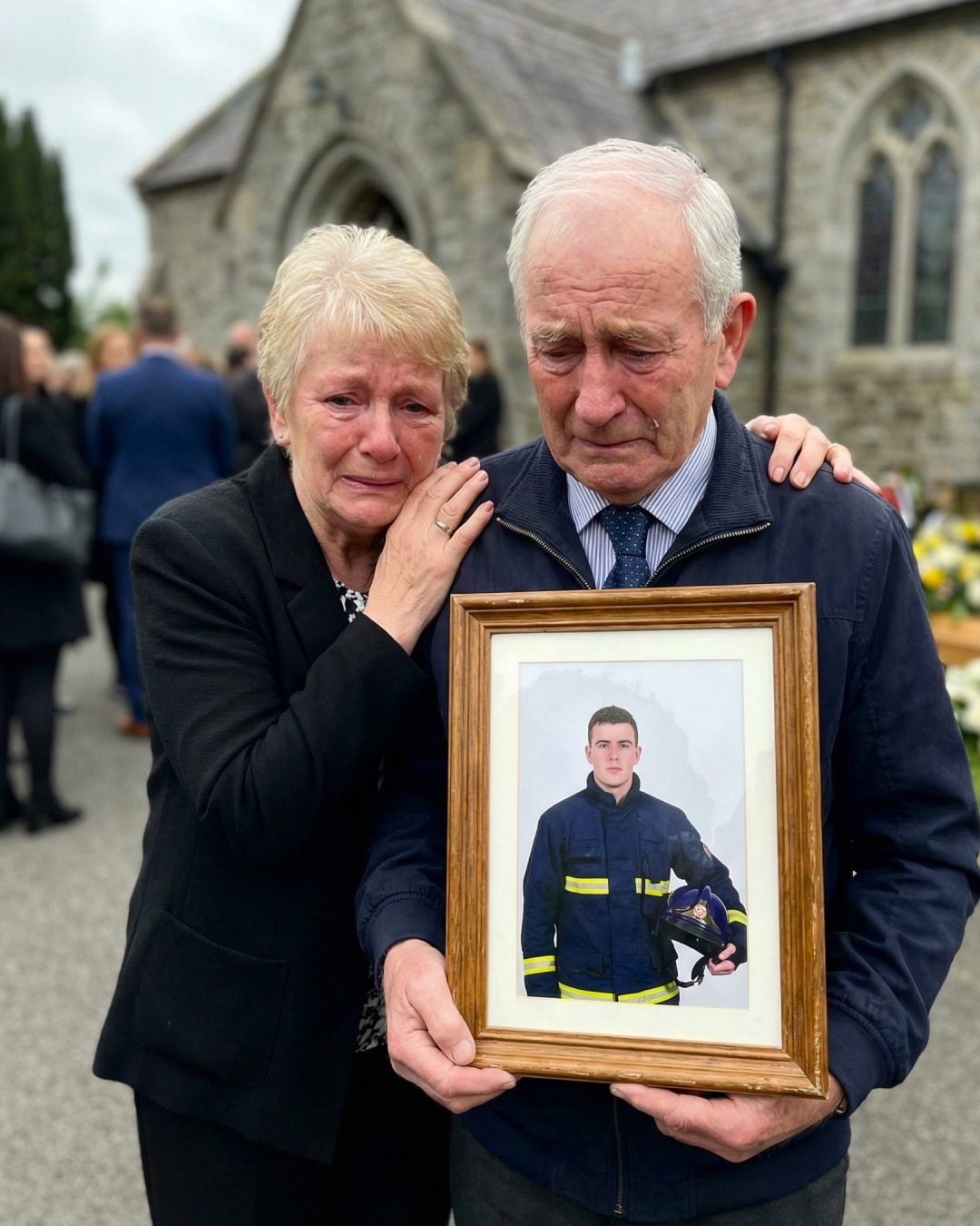 Jeho rodiče stáli u kostela a drželi fotografii syna v uniformě — mladého, usmívajícího se, plného života. Otec, silný muž, který celý život pracoval v továrně, plakal a nestyděl se za slzy. Matka nemohla odtrhnout pohled od fotografie — svého chlapce, svého jediného syna, svého hrdiny.