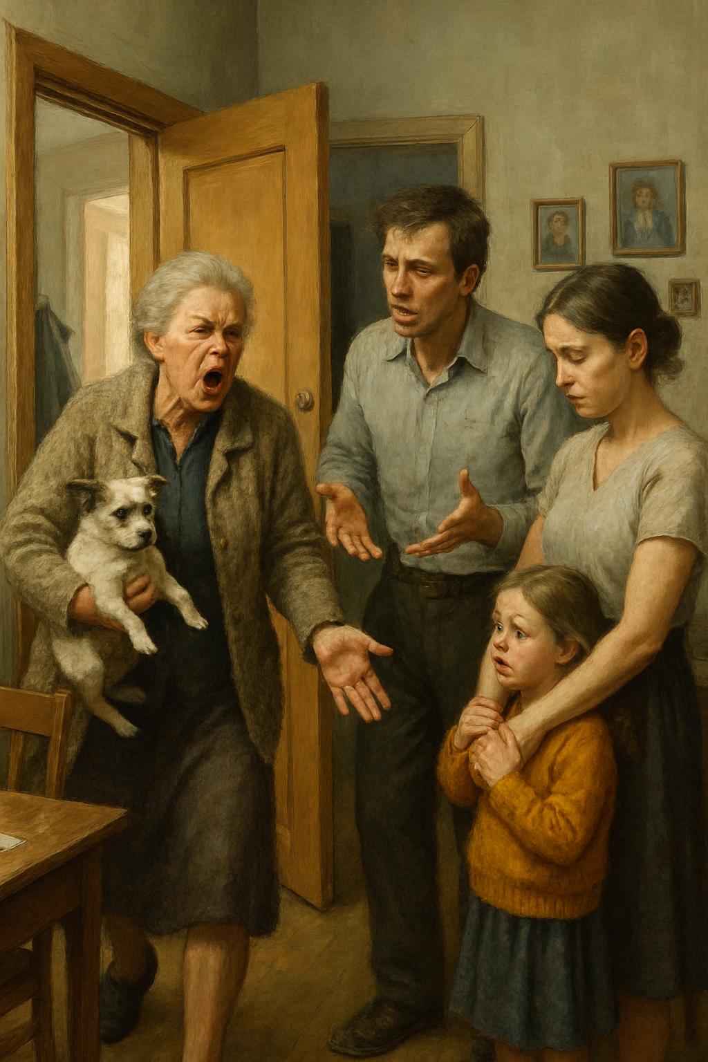 „Odcházím. Moje noha už tady víckrát nevkročí,“ prohlásila Marie a s prásknutím dveří vyšla z bytu, držíc v náručí svého drahocenného pejska Lukáše.