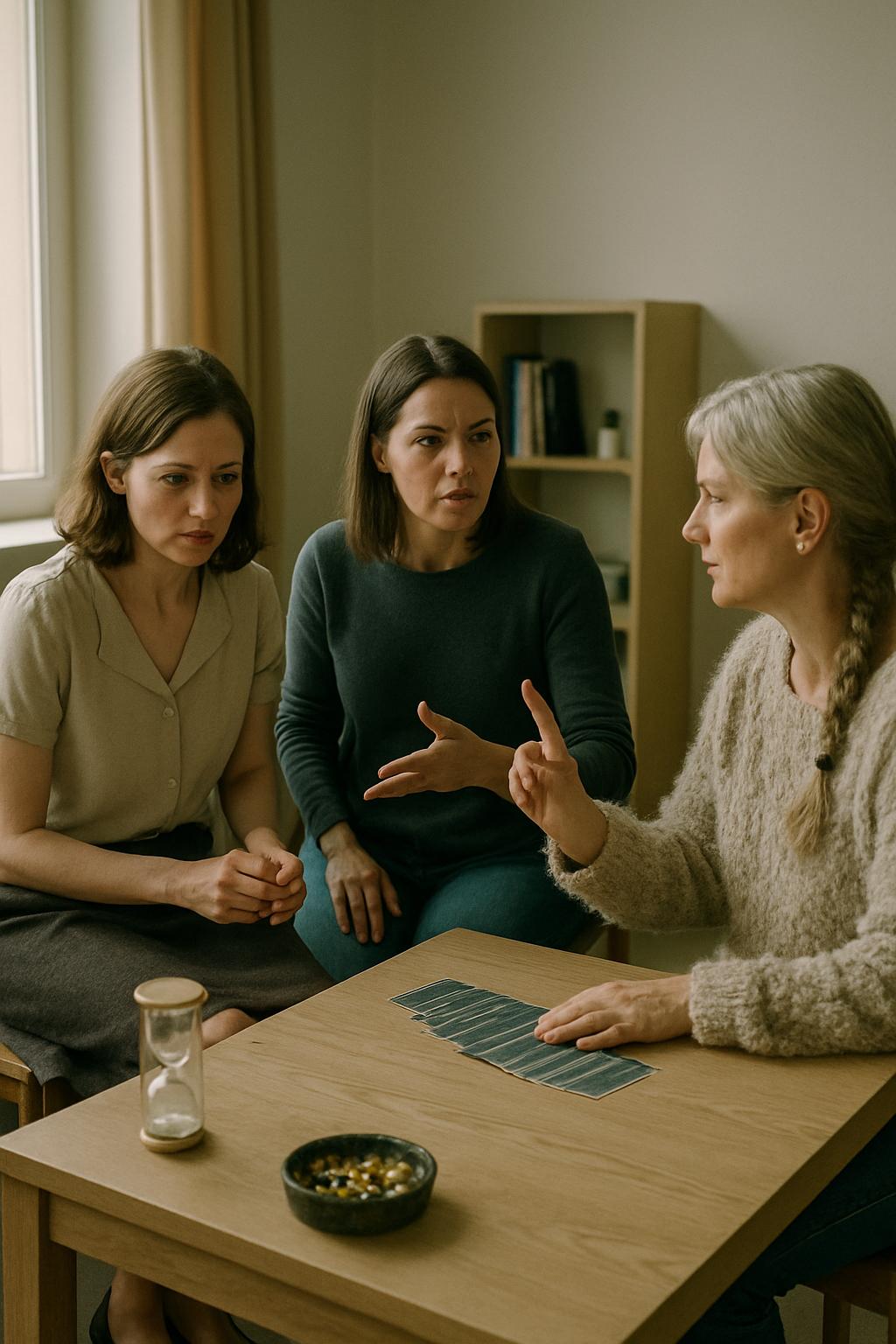Čekala temnou atmosféru plnou svíček a podivných rekvizit, ale realita byla jiná. Obyčejná místnost, žádné soví preparáty ani mystické dekorace. Za prostým dřevěným stolem seděla nenápadná žena se světlými vlasy spletenými do copu, v džínách a huňatém svetru. Vzduchem se mísila vůně třešňového tabáku a těžkého parfému Dior. Na stole ležely přesýpací hodiny, popelník plný nedopalků a balíček karet. Milenu to vyvedlo z míry. Kartářky si představovala úplně jinak a svůj dotaz ze sebe soukala jen obtížně.